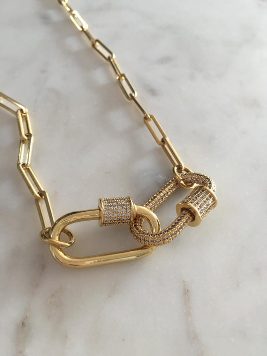 Callie Double Oval Lock Chain-link Necklace