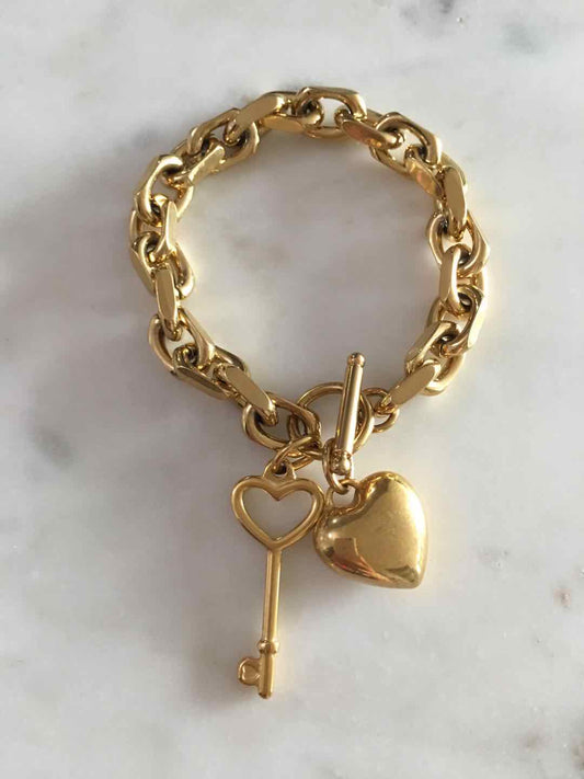 Puffy Heart & Key Toggle Lock bracelet with Stacia chain