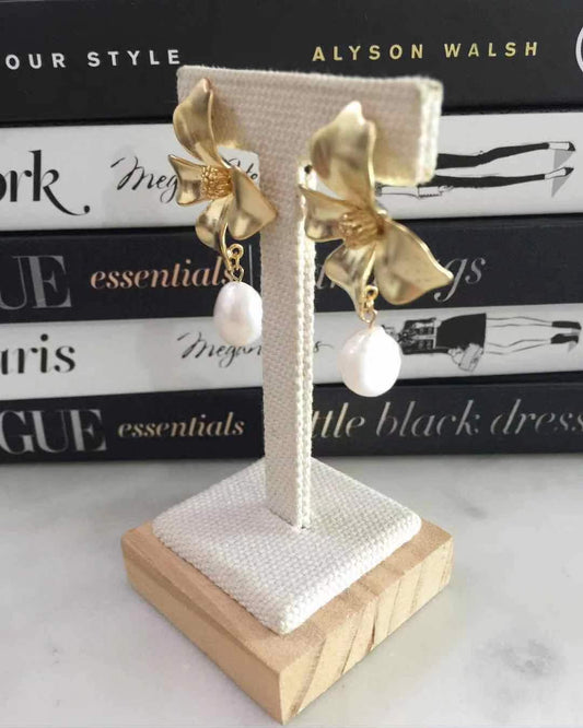 Carmeigh Gold Floral with Pearl Earrings