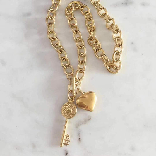 Heart & Key Toggle lock chain necklace.
