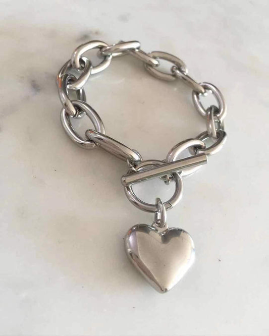 Puff Heart Toggle lock chain bracelet in silver