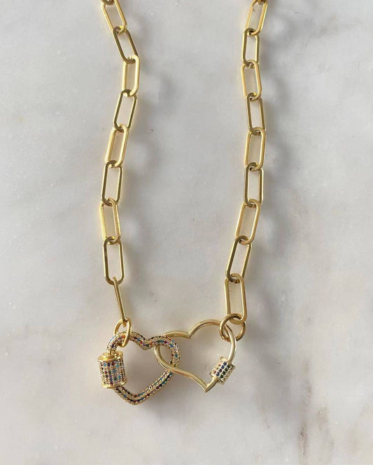 Martha And Simone Double Heart Lock Chain Link Necklace