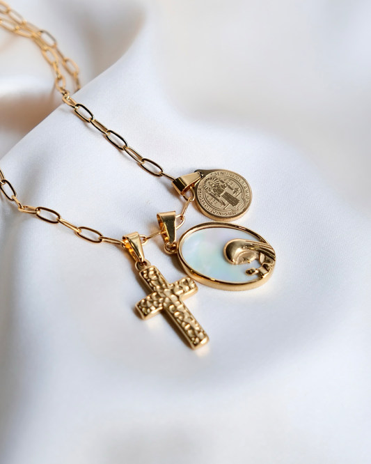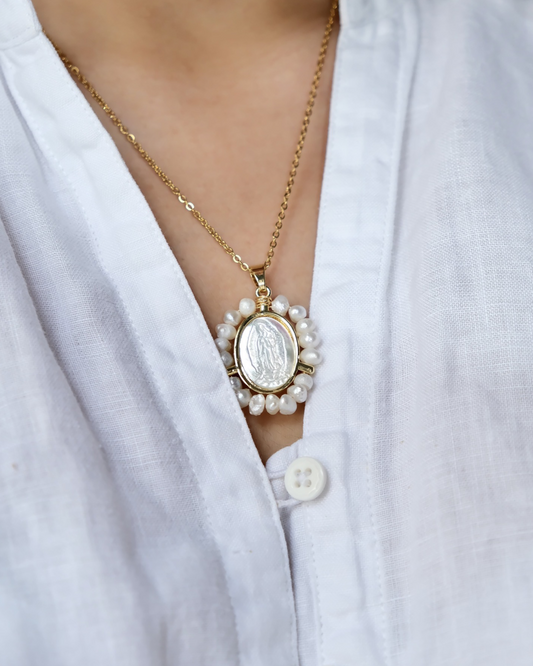Our Lady of Lourdes Toggle Lock Necklace with Pearl