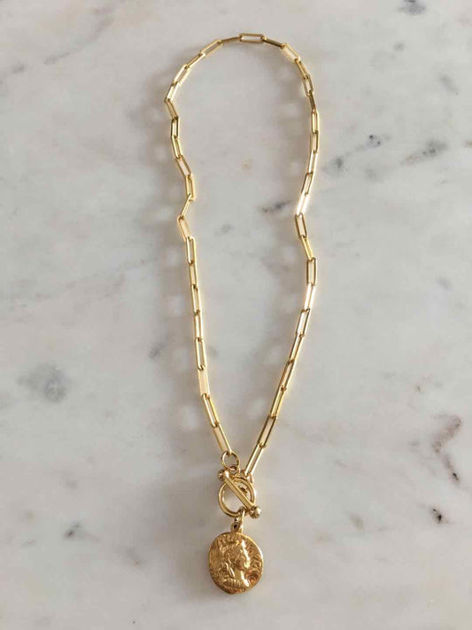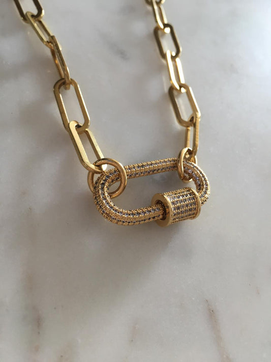 Sage Multicolored Studded Large Oval Lock Chain-link Necklace
