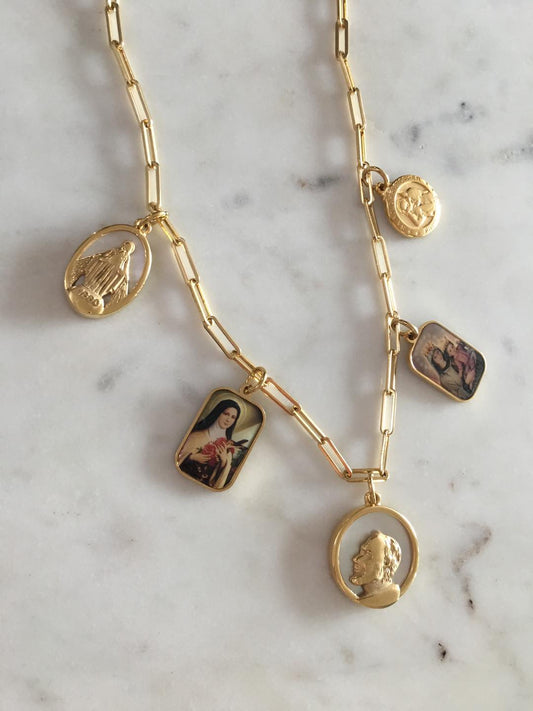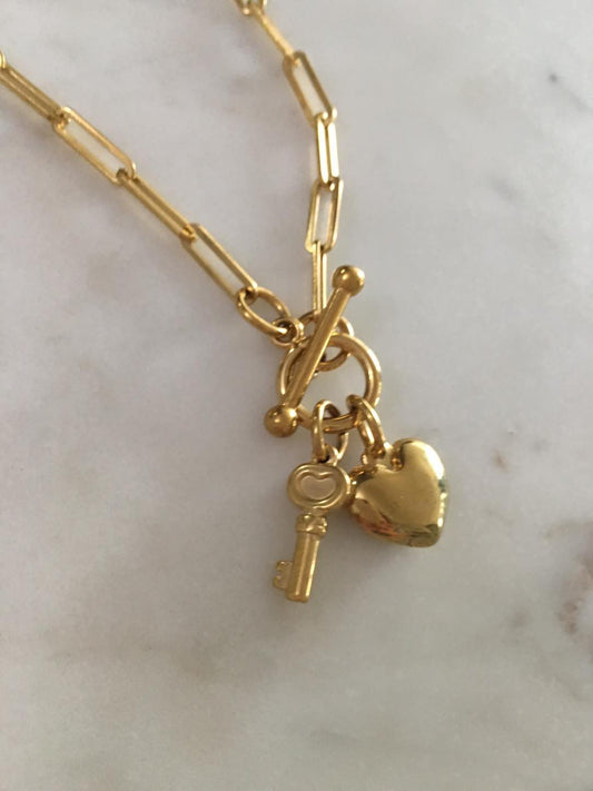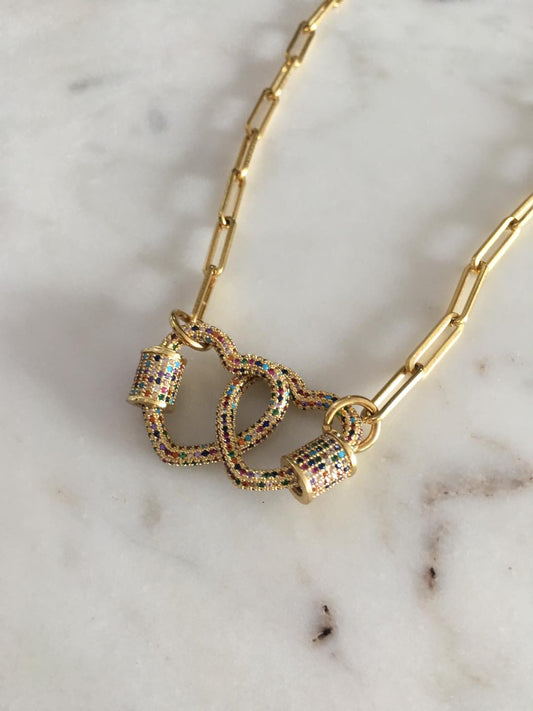 Shiloh Chain with Double Heart Lock Multicolored Charm Necklace