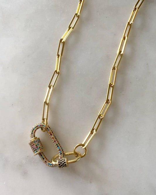 Double Oval Lock Sapphire Large Multicolored Studded Necklace