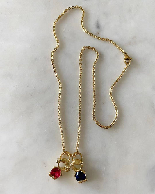 Double Oval Lock Ruby Large Multicolored Studded Necklace