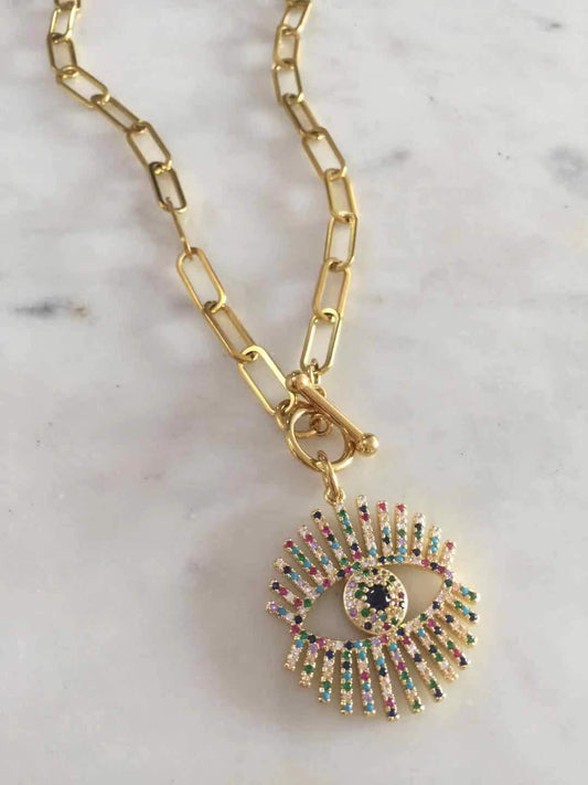 Multicolored Evil Eye Toggle necklace