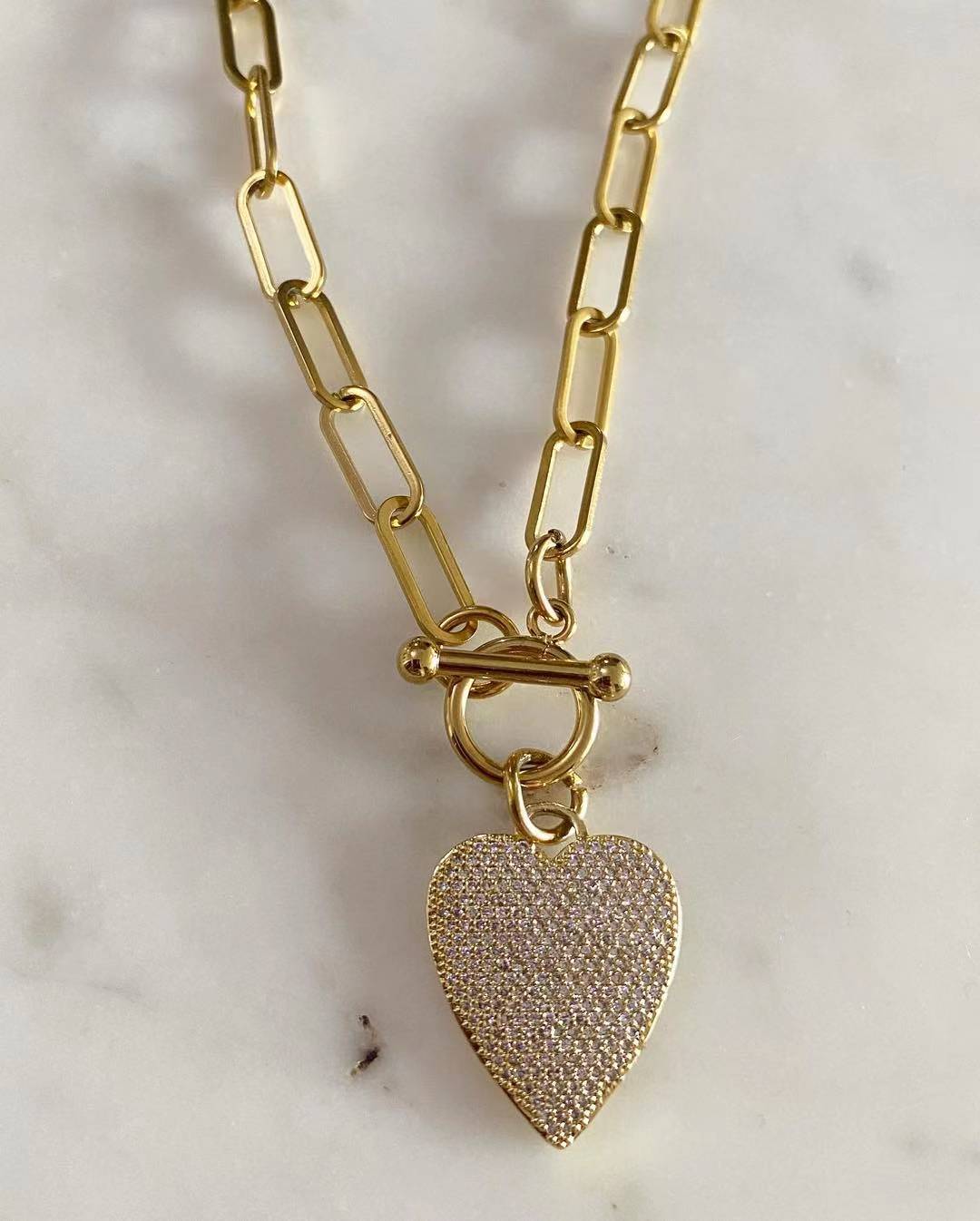 Material: Stainless steel plated chain and non tarnish. Gold plated heart pendant with fashion stones. Hypoallergenic.