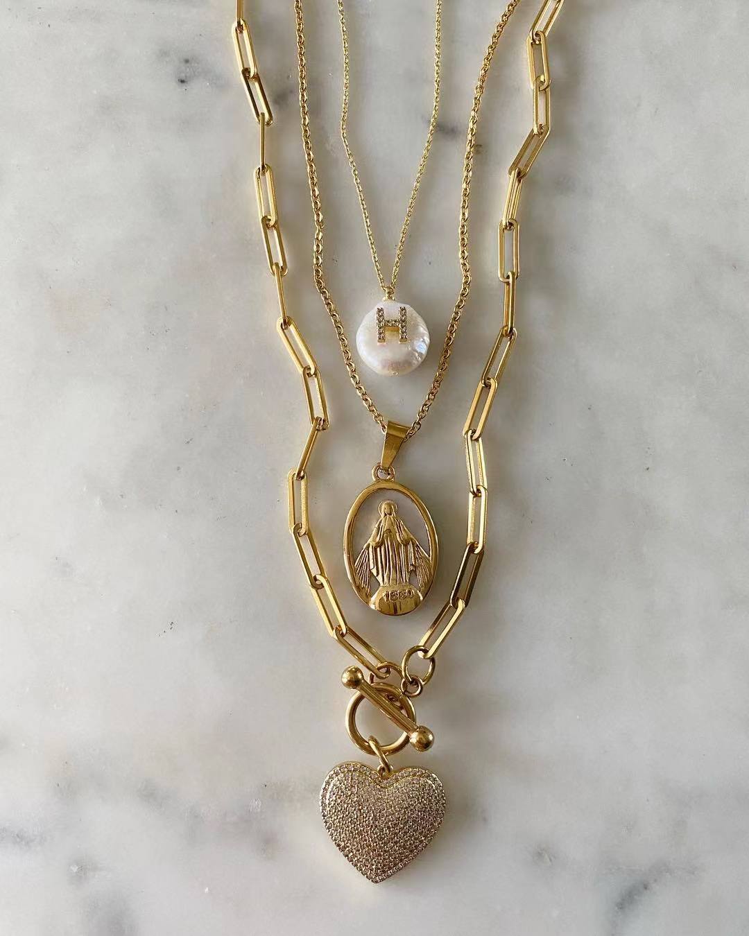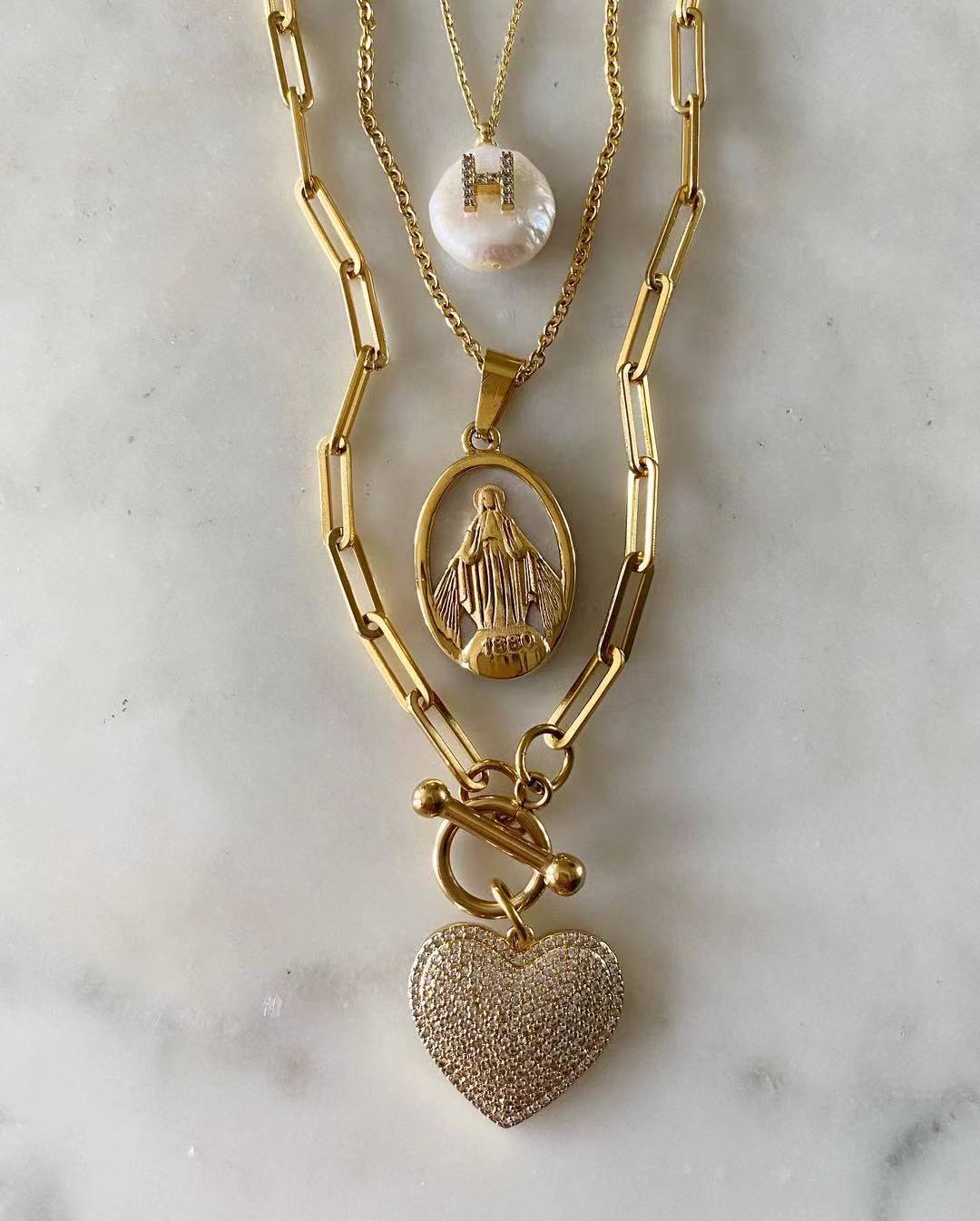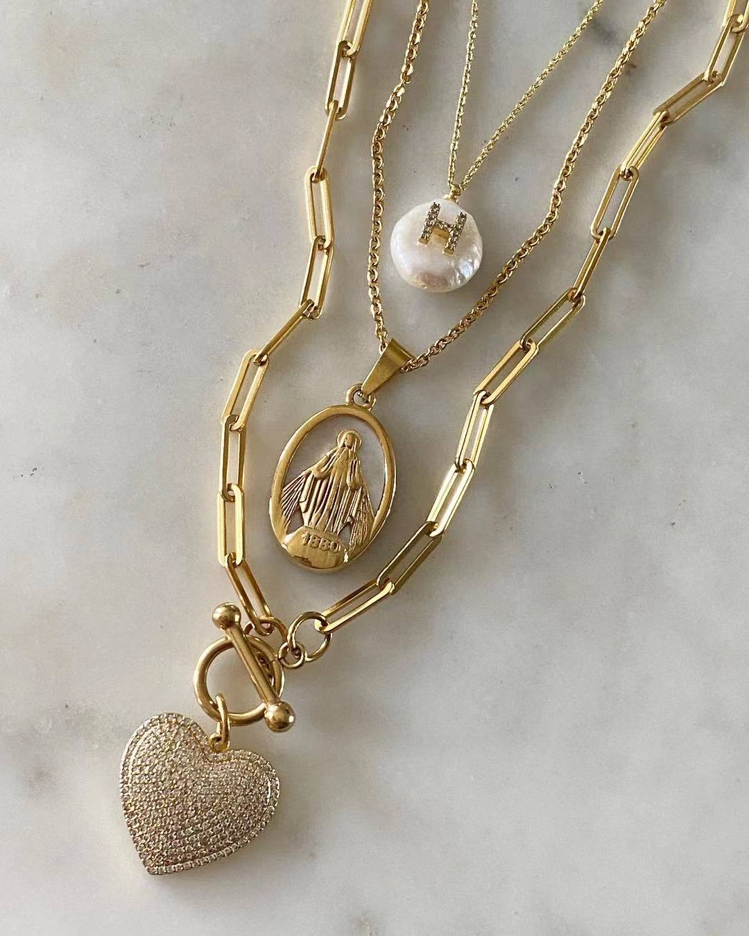 One of our favorite looks. Gorgeous golden layers with Miraculous Medal and Heart pendants. Symbols of unconditional love and dedication.