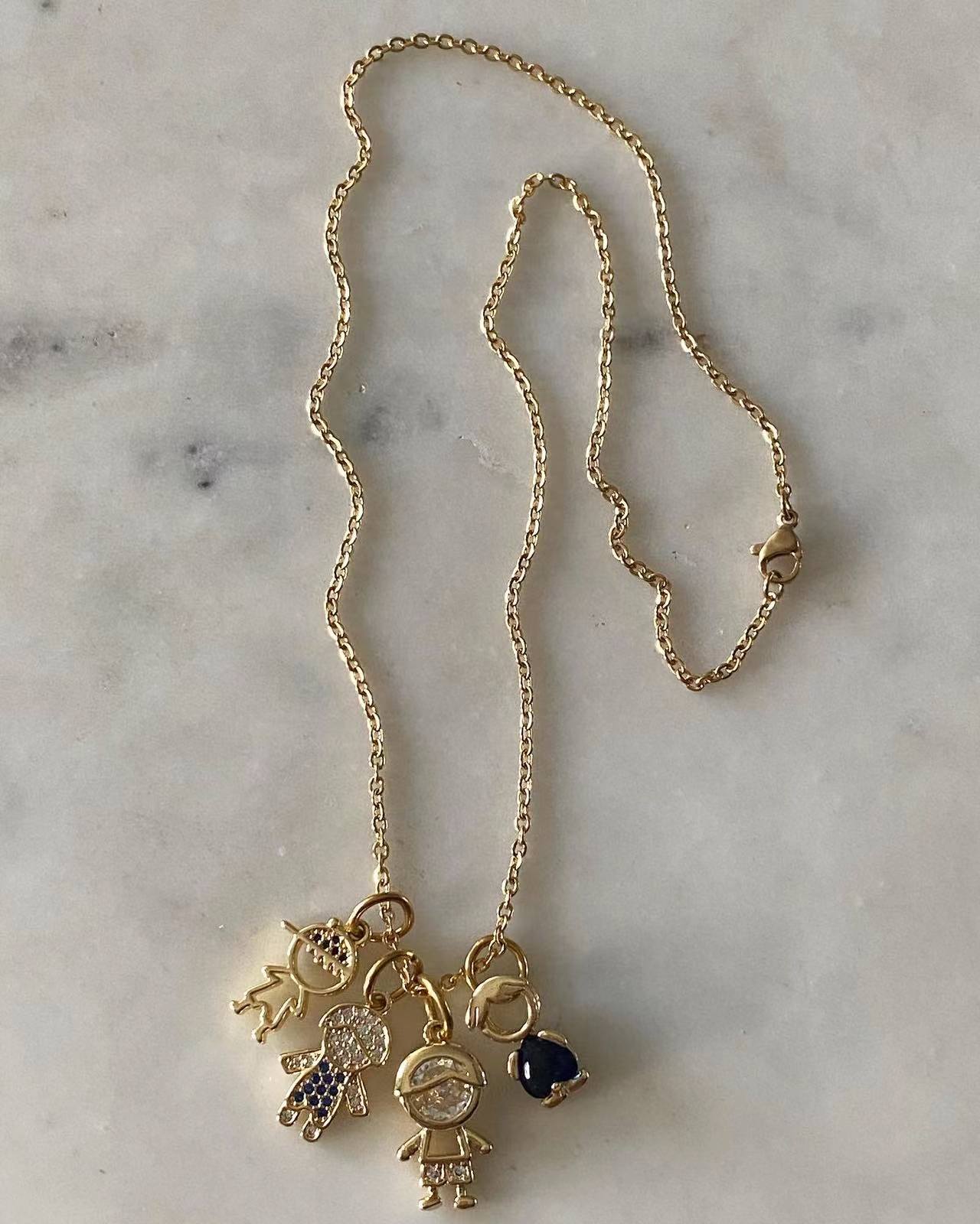 Material: Stainless steel chain. Non tarnish. Pendants are made of gold plating with fashion stones. Hypoallergenic.