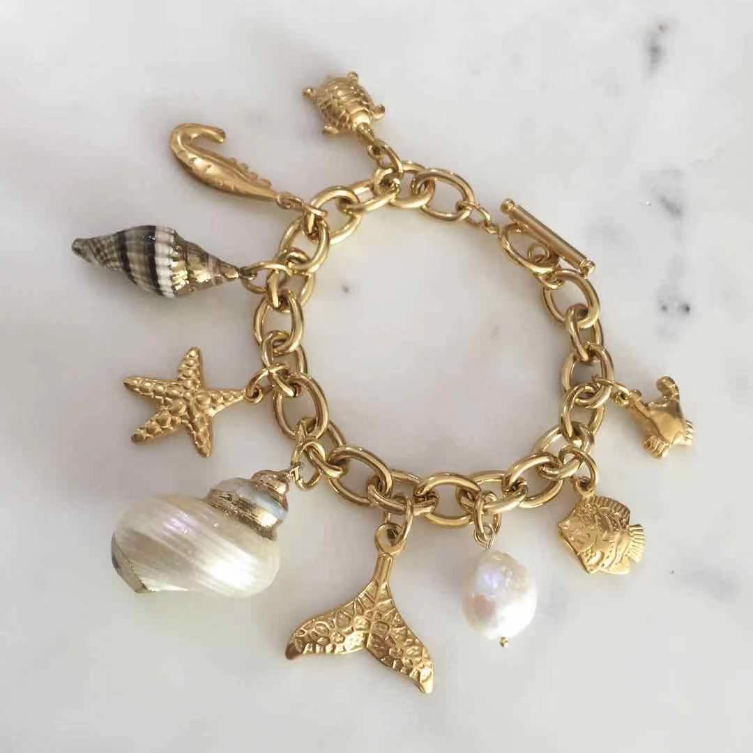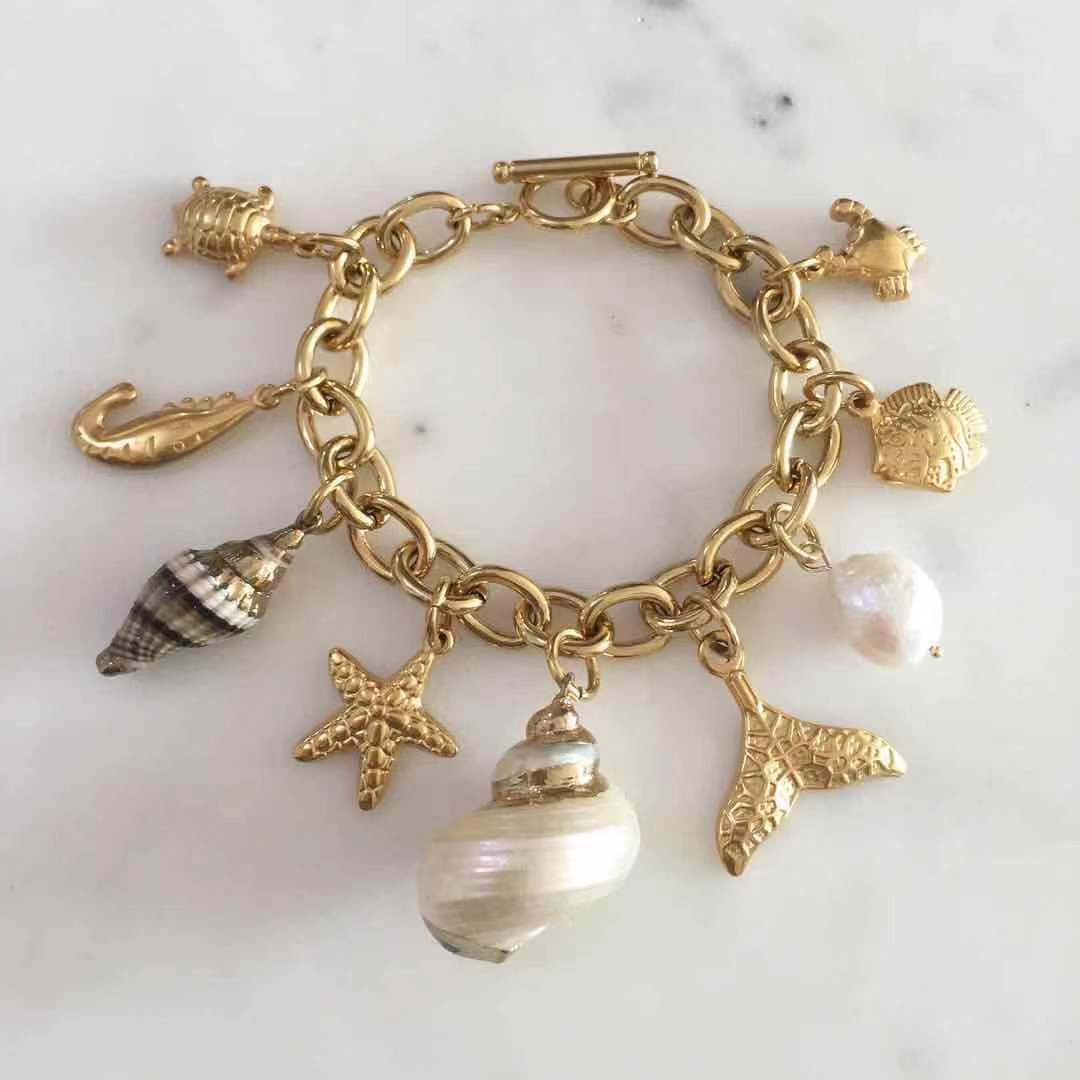 Material: Stainless steel plating. Non tarnish and hypoallergenic. Seashells and baroque pearls may vary in shape and size. Bracelet size: 6.5”-9” inches.