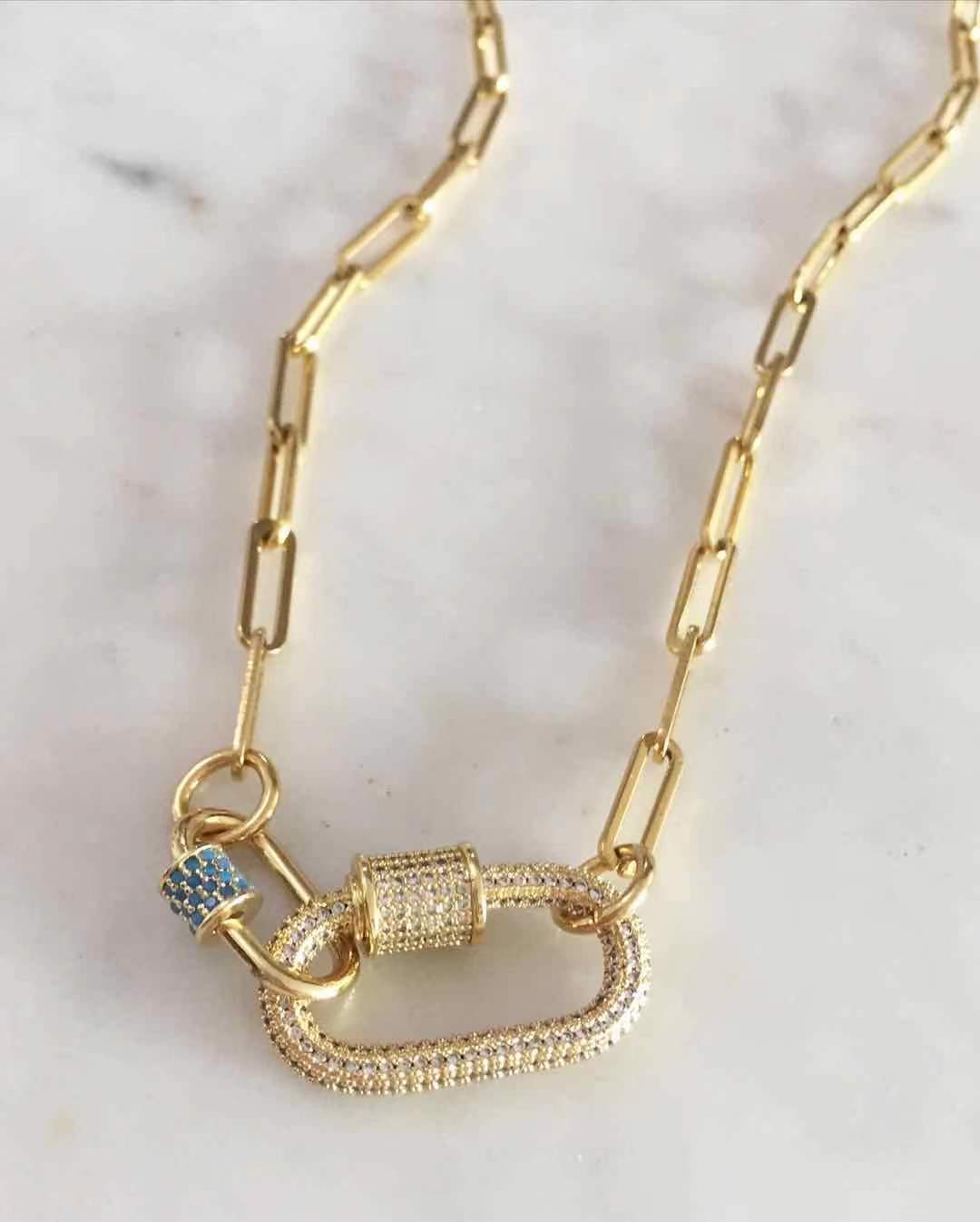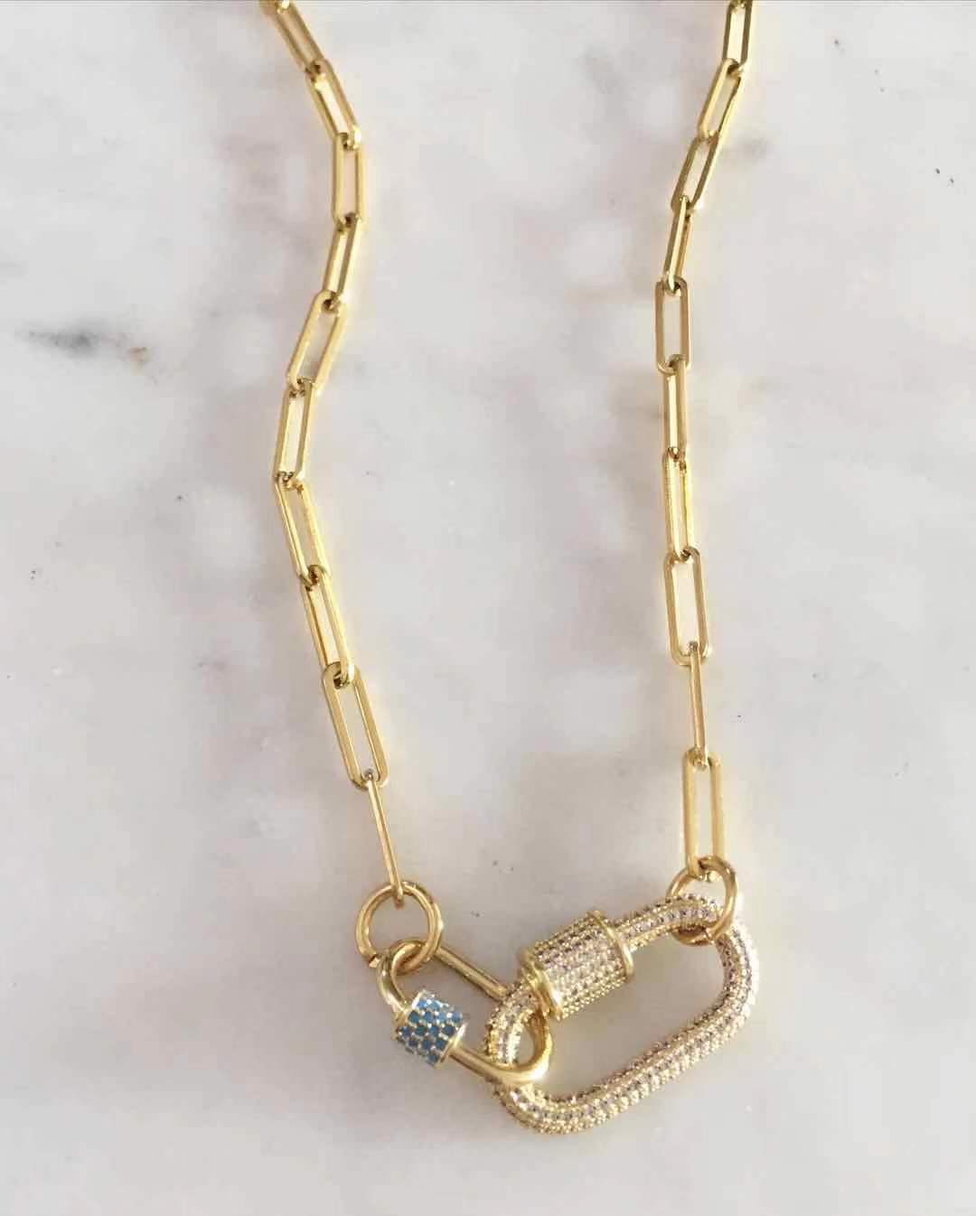 Material: Stainless steel plating chain. Non tarmish and hypoallergenic. Oval locks are gold plated with fashion stones.