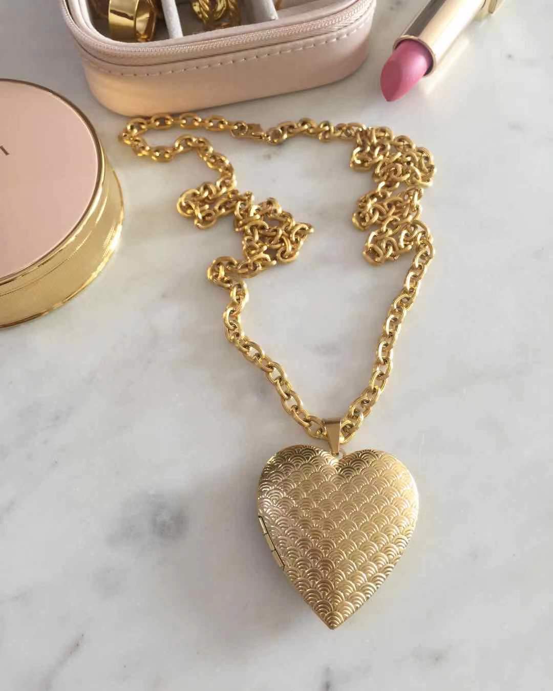 Material: Stainless steel chain and Heart locket. Chain length:18”-24” adjustable.