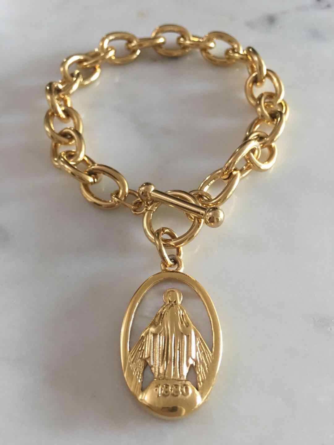 Merging a timeless symbol of faith and divine style, our Harper bracelet with Miraculous Medal charm shines well as an everyday essential. It comes with an adjustable 6 to 9 inch stainless steel chain.
