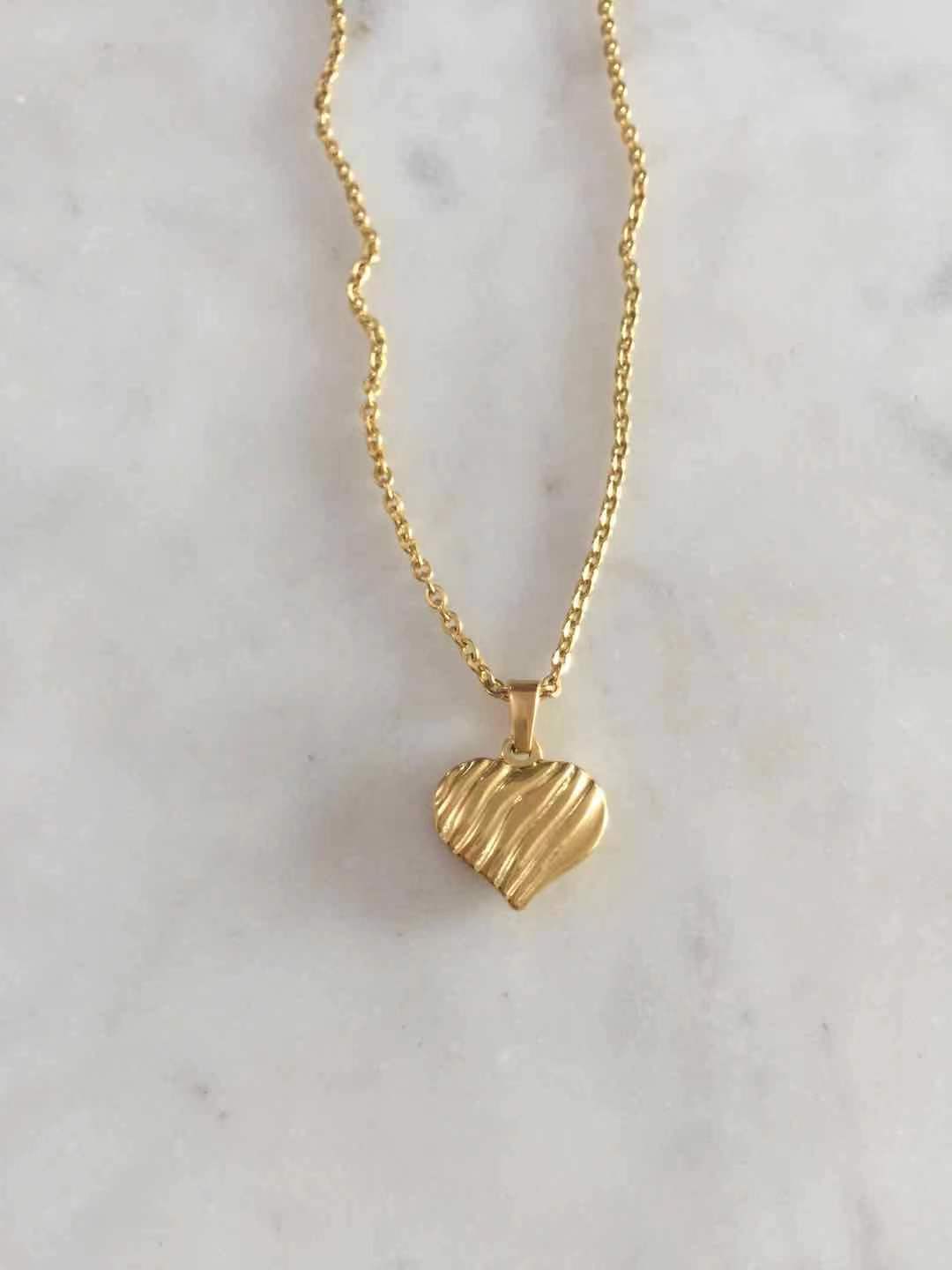 Material: Small heart pendant is made of stainless steel gold plating. Chain length 18”.