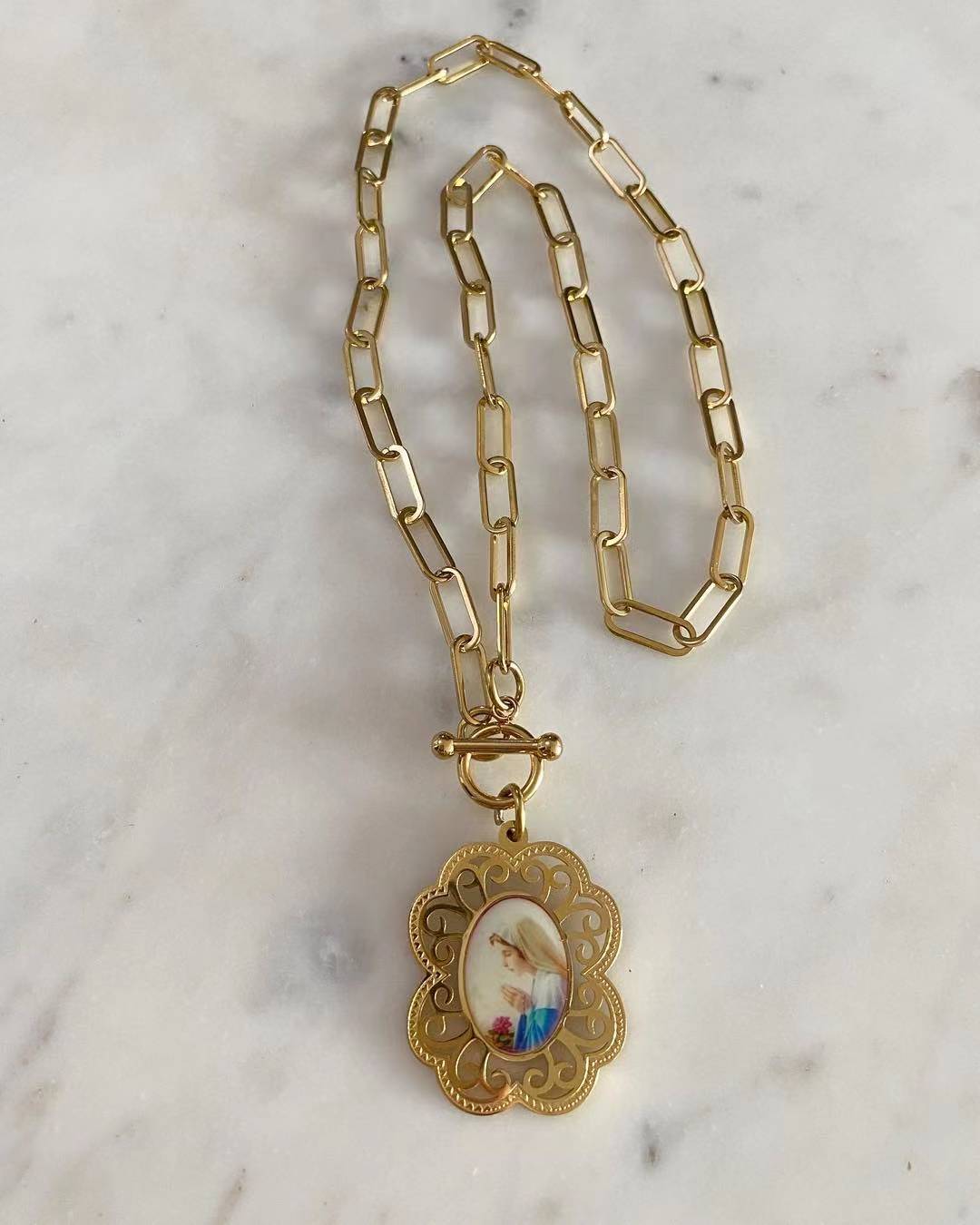 Mama Mary Toggle Lock Necklace