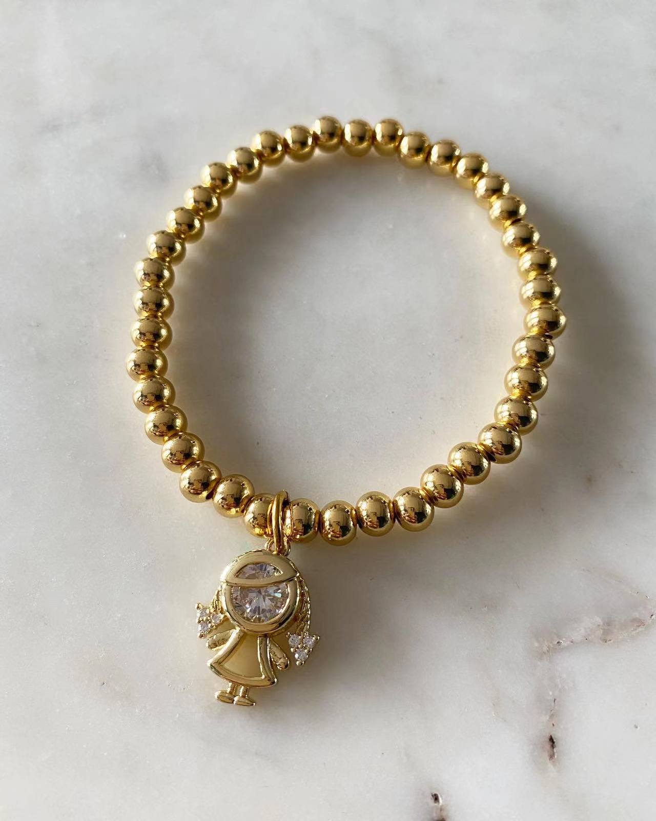 Material: Stainless steel plating bracelet is non tarnish and hypoallergenic. Girl charm is gold plated with fashion stone.