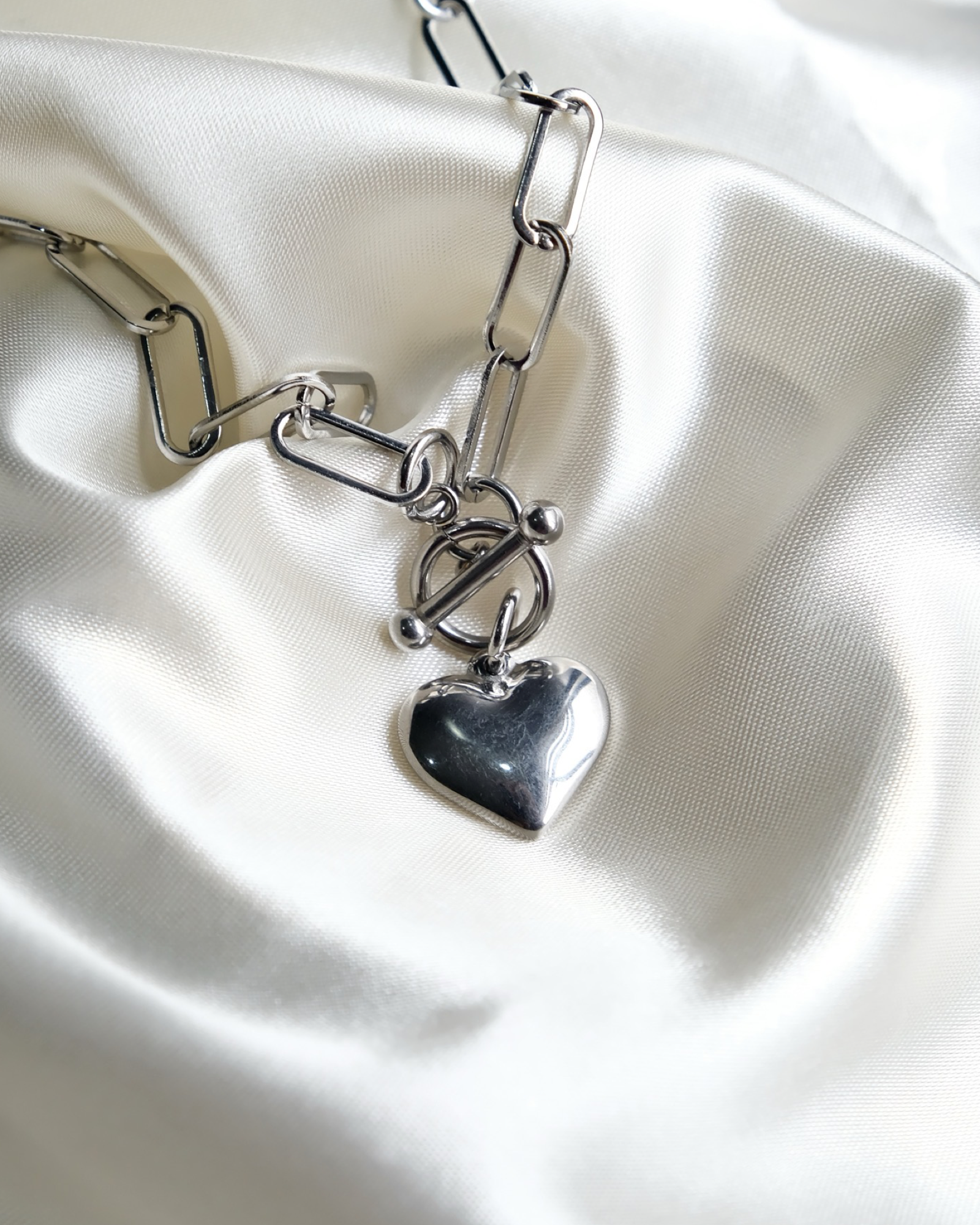Medium Puff Heart Silver Toggle Lock Shiloh Chain Necklace
