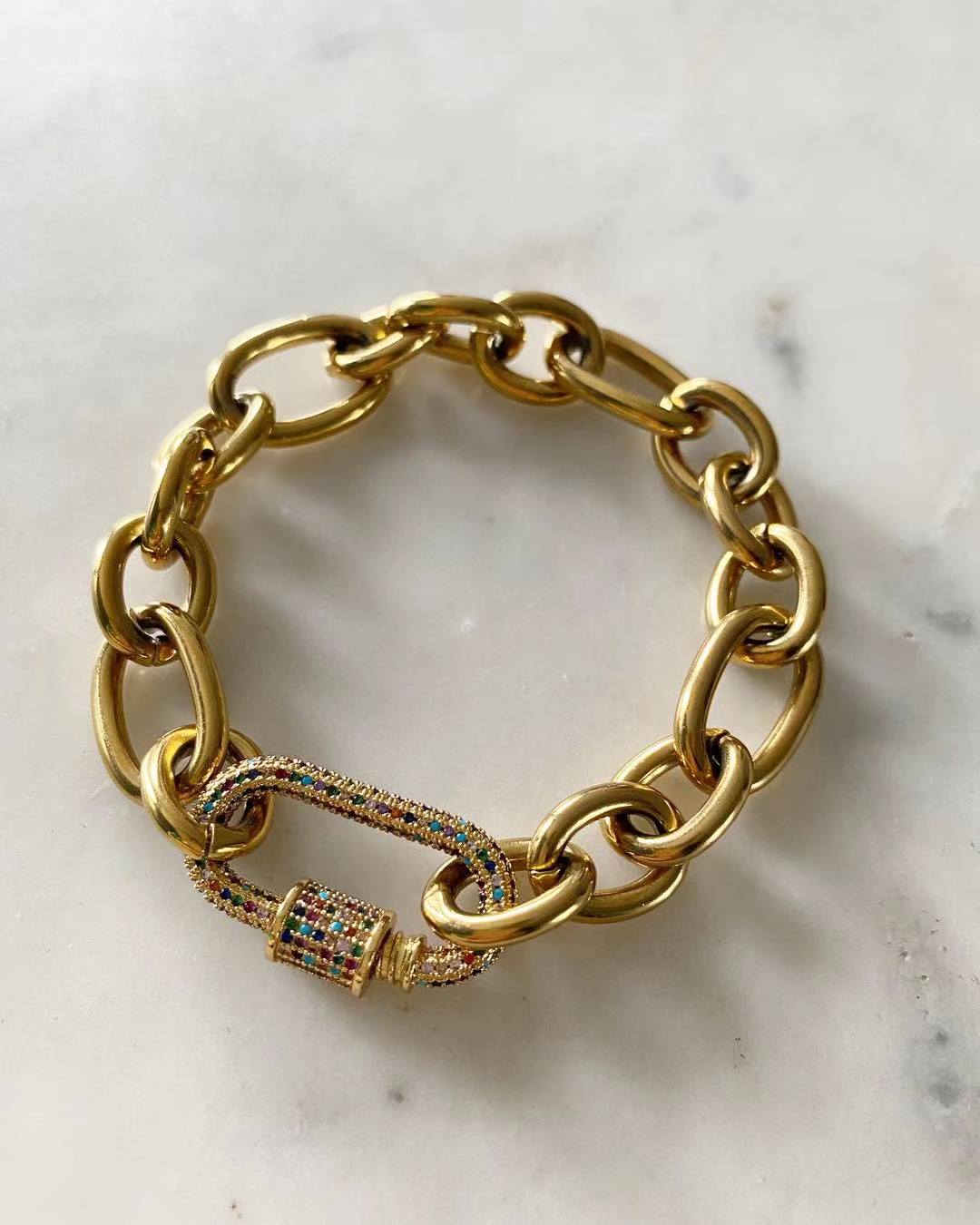 Material: Stainless steel chain is non tarnish. Gold plated oval lock. Hypoallergenic.