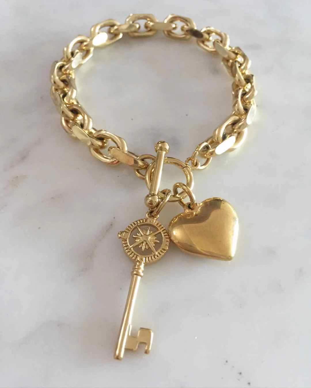 Puffy Heart & Nautical Key Toggle Lock Bracelet
