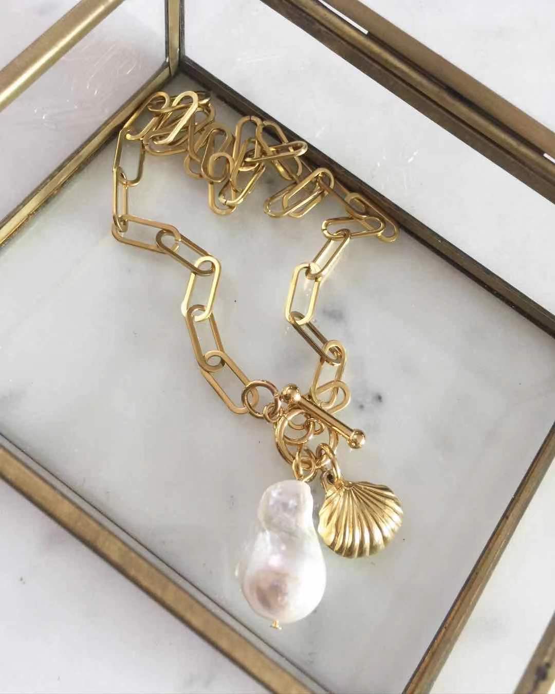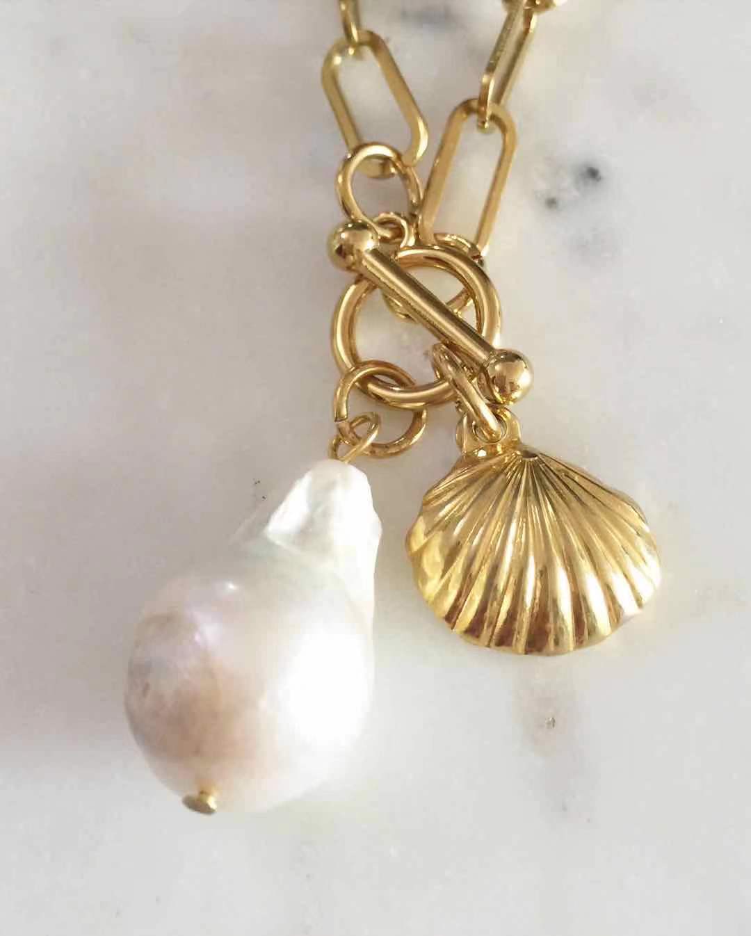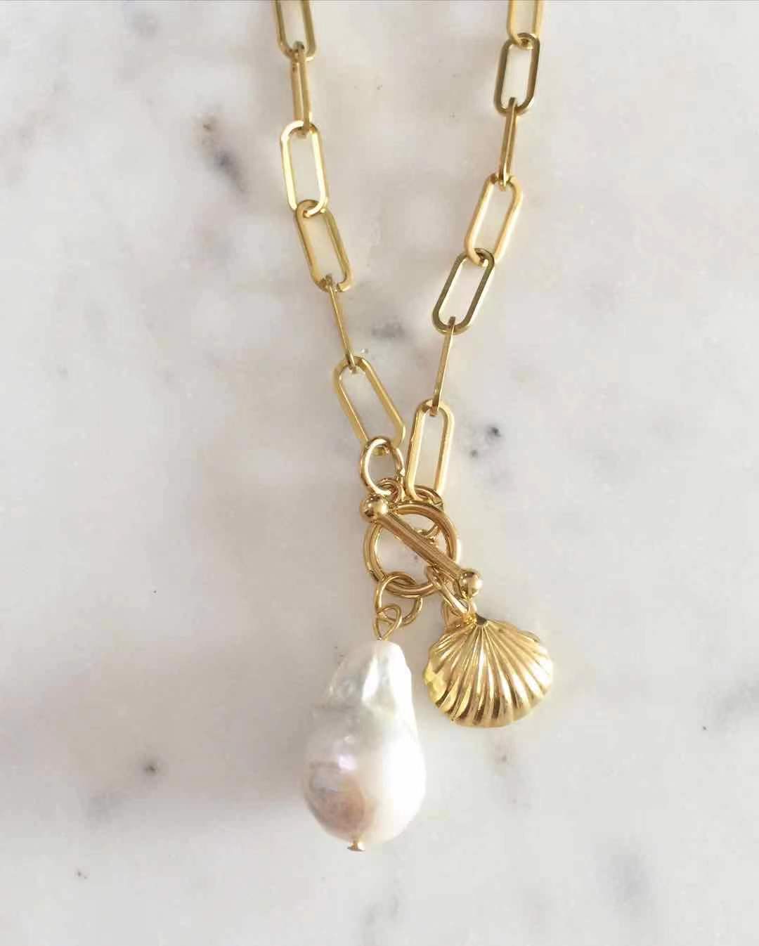 Material: Stainless steel plating. Non tarnish and hypoallergenic. Baroque pearl may vary in shape and size.