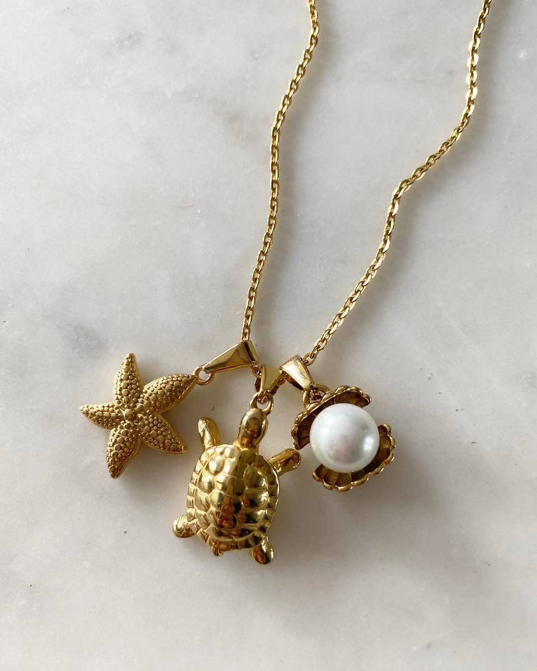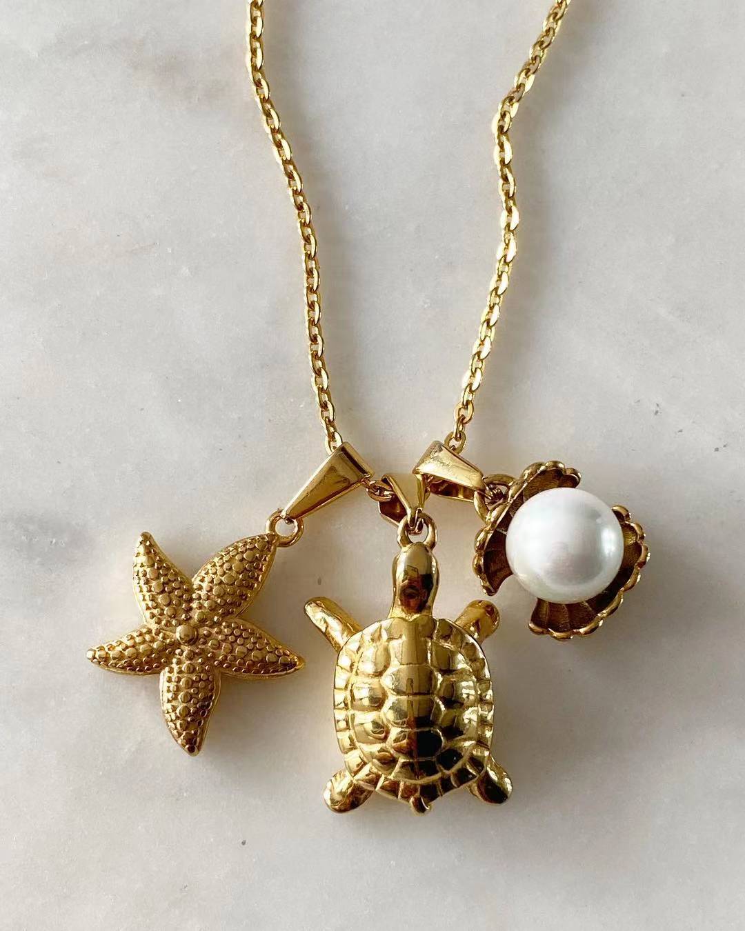 Starfish • Giant Turtle • Clam Shell Seascape Necklace